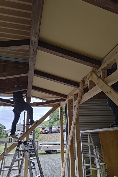 - 横胴縁: 空気が流れるように、わざと隙間を開けて施工します。