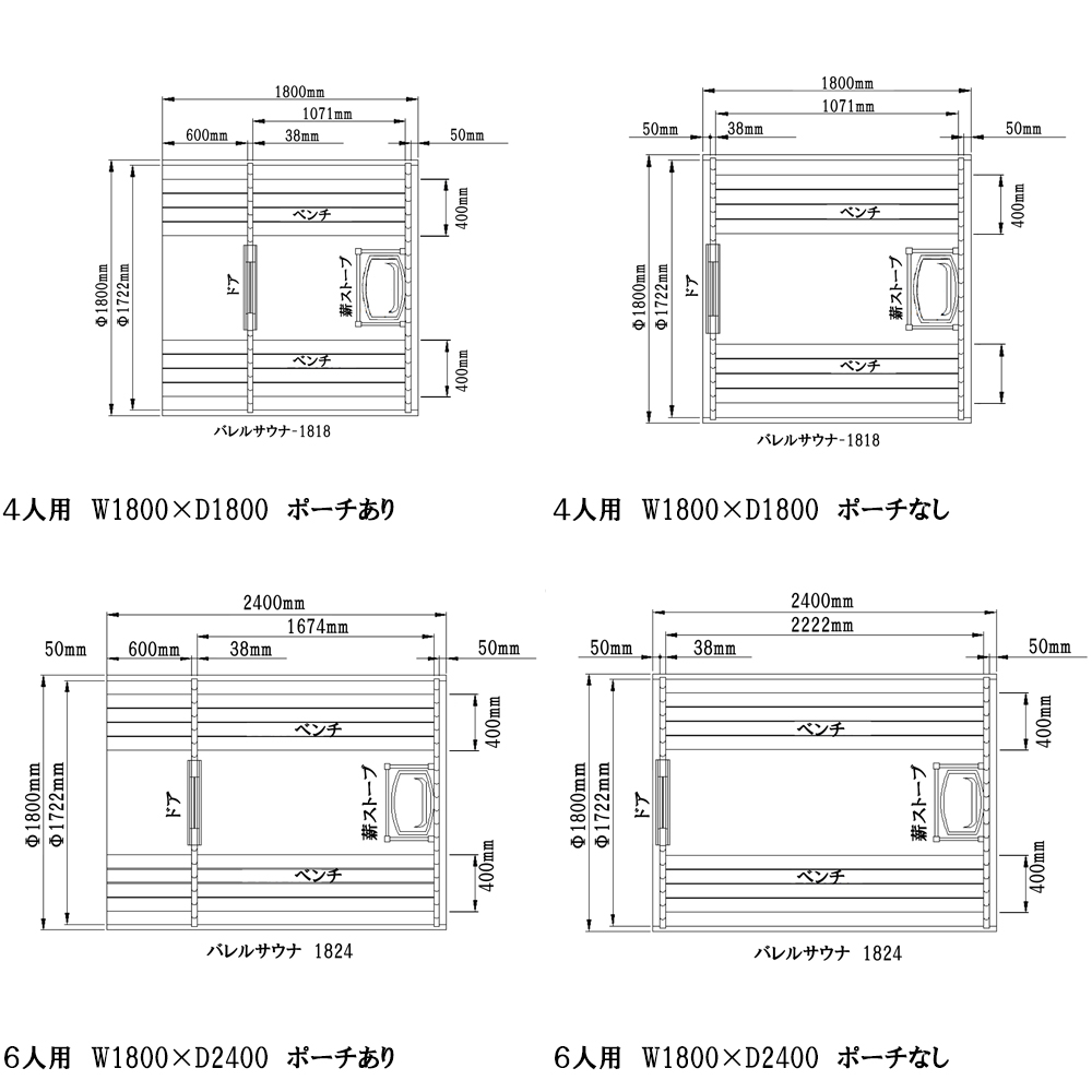 | バレルサウナ本体 | ヘムロック W1800×D1500 | ¥930,000- |