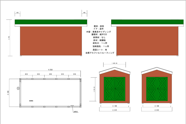 | 屋根材 | ガルバニウム鋼鈑 縦平333 |