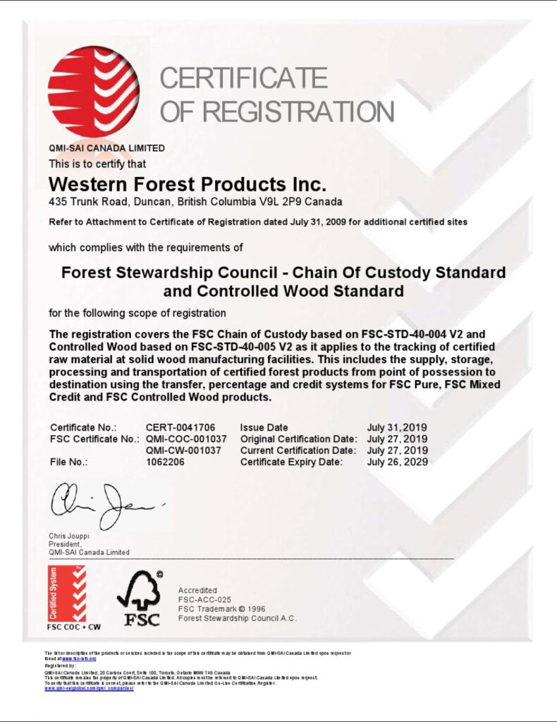 使用されている木材がカナダ産の確かなものである証明書です。