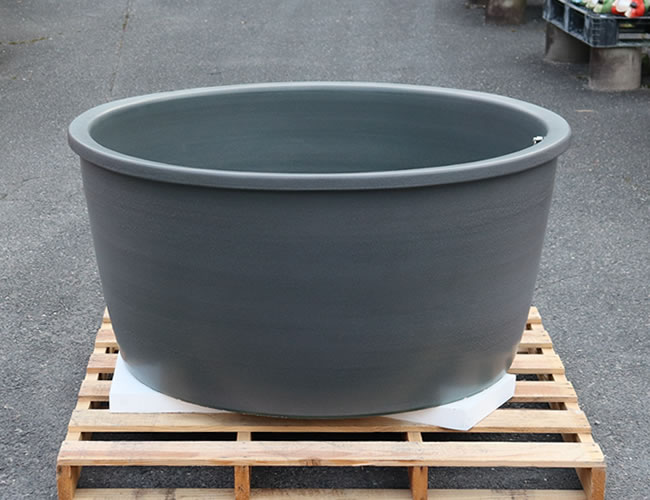 お勧めの大きさは ロクロ成型タイプ 直径1100mm×高さ600mm 重量130kg 水量360L