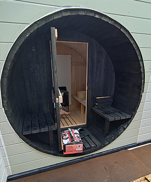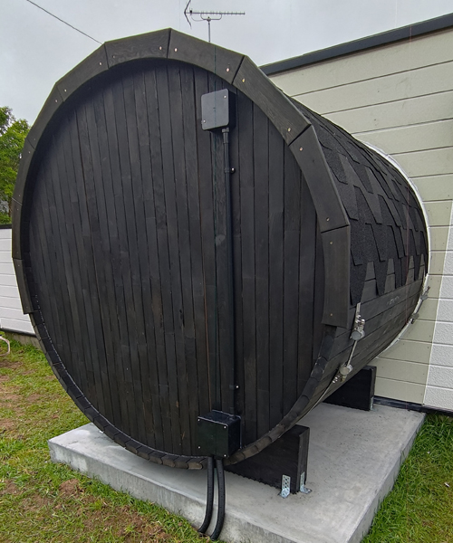 静岡県から三ケ日に納められたバレルサウナ 電気ストーブ
